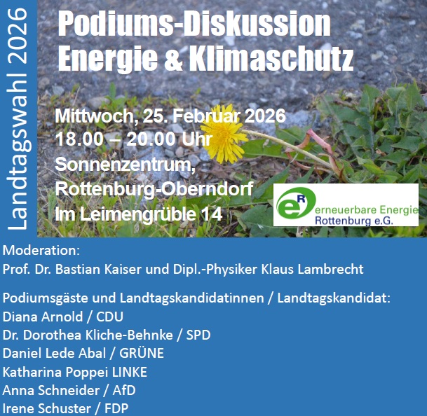 25.02.2026: 18-20 Uhr. Podiums-Diskussion zur Landtagswahl: Energie & Klimaschutz
